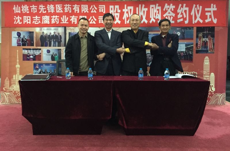 2014年11月19日,中国先锋医药董事长李新洲先生、执行董事朱梦军先生等与电白县富鸿投资有限公司周建华先生、沈权先生、张万军先生等一行在中国先锋医药上海运营总部举行隆重的签约仪式,双方签署了股权收购协议,中国先锋医药通过全资子公司仙桃市先锋医药有限公司收购电白县富鸿投资有限公司拥有的沈阳志鹰药业有限公司51%股权。